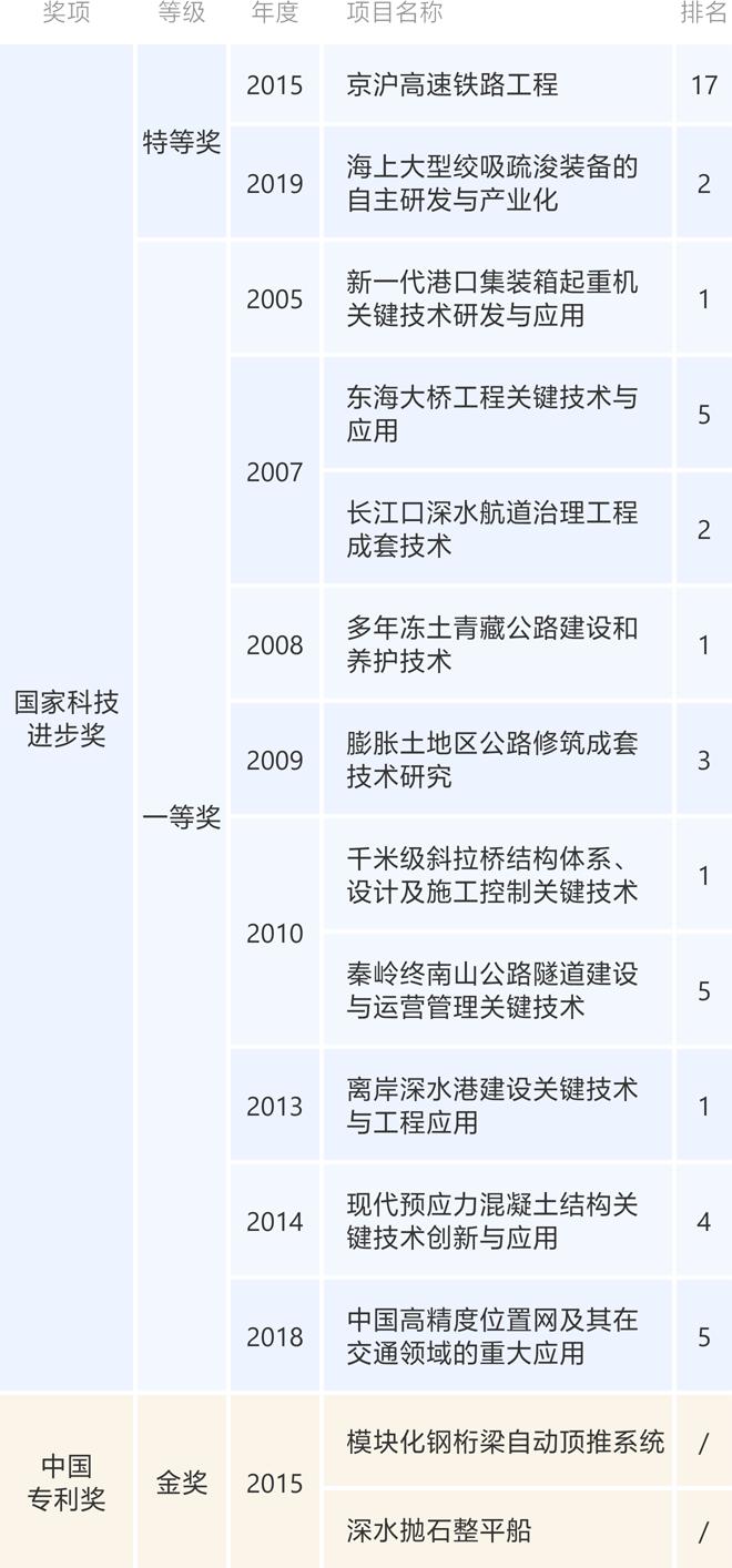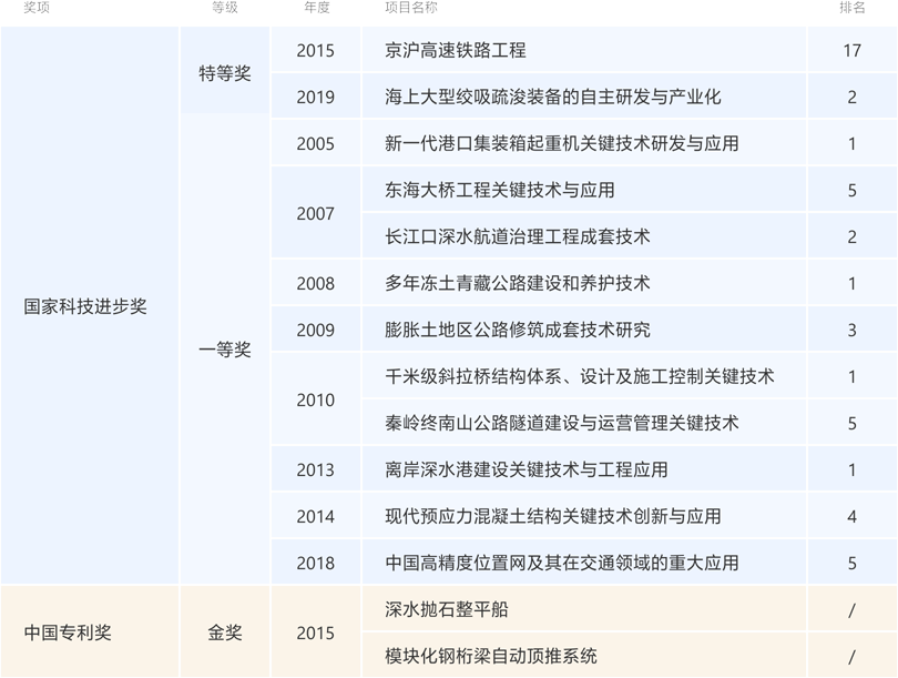截至2021年底,公司獲得國家科技進步獎特等獎2項,一等獎10項,二等獎34項;國家技術發(fā)明獎二等獎5項。中國專利獎金獎2項,優(yōu)秀獎34項。詹天佑獎108項。