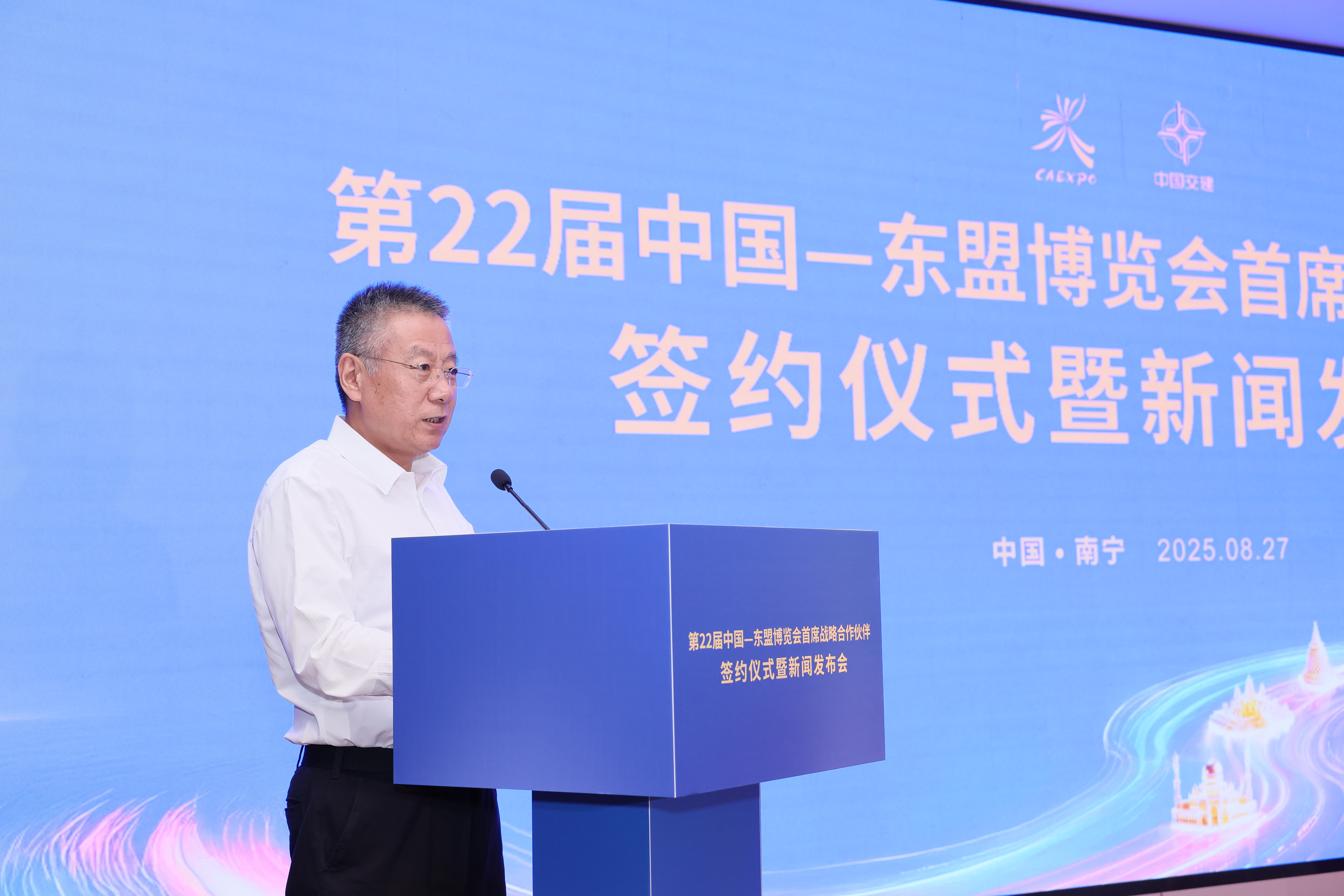 8月27日,第22屆中國—東盟博覽會(東博會)首席戰(zhàn)略合作伙伴簽約儀式暨新聞發(fā)布會在南寧舉行。中交集團繼2023年與東博會攜手成為首席戰(zhàn)略合作伙伴后,今年再度榮膺第22屆東博會首席戰(zhàn)略合作伙伴。廣西壯族自治區(qū)副主席廖品琥出席簽約儀式,向中交集團頒發(fā)“第22屆中國—東盟博覽會首席戰(zhàn)略合作伙伴”榮譽牌匾。中交集團黨委常委、副總經理陳重,廣西壯族自治區(qū)人民政府副秘書長鄭愿東見證簽約并致辭。東博會秘書處秘書長韋朝暉主持簽約儀式。