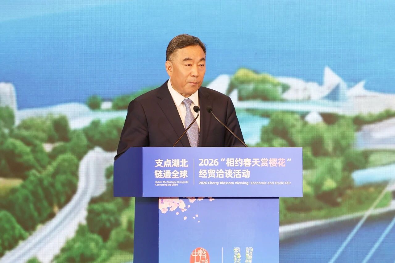 王忠林代表湖北省委、省政府向出席活動的來賓表示熱烈歡迎,向長期以來關心支持湖北發展的各國各界朋友表示衷心感謝。他表示,習近平總書記對湖北情深似海、厚望如山,賦予湖北加快建成中部地區崛起重要戰略支點的使命任務,要求湖北打造內陸開放高地。本次“相約春天賞櫻花”經貿洽談活動以“支點湖北 鏈通全球”為主題,希望與海內外朋友一道,進一步搶抓時代機遇、深化務實合作,攜手共建支點、實現互利共贏。