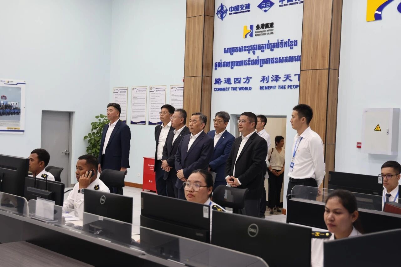 當天,宋海良一行調研金港高速項目,實地考察了金港高速金邊收費站、ETC發行中心、運營中心文化長廊和監控中心,了解了高速收費運營情況和企業文化建設情況。宋海良強調,項目運營團隊要充分融入柬埔寨“五角戰略”中數字經濟發展的戰略,聚焦數字科技賦能場景,持續優化收費系統,在公路鏈中嵌入智慧交通與數字運維,進一步加強智慧收費與服務的便捷性,確保通行效率和服務質量,提升用戶體驗,推動向新質價值鏈升級;要高度重視全路段監控與安全運營,完善應急預案,保障高速公路安全暢通,推動“四位一體”大風控格局與生產經營全面融合,持續完善境外風險防控機制;要深化企業跨文化融合,增強團隊凝聚力,打造優質服務品牌,讓中交品牌在柬埔寨國別深入人心,為后續產業鏈延伸和同類或相近項目獲取提供強支撐。