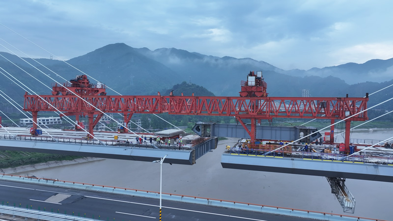 面對復雜嚴峻的施工挑戰,浙江交通集團甬臺溫改擴建臺州北段指揮部及參建單位持續優化工藝與安全措施,確保建設安全高效推進。針對主墩樁基直徑大、地質條件復雜等難題,項目團隊采用旋挖鉆配合全液壓回旋鉆機接力施工,確保主墩樁基成孔質量;運用寬體式液壓爬模施工配合第三方監測,實現毫米級精度控制,保障主塔順利封頂;踐行“模塊化建造”理念,創新鋼筋“半部品吊裝”施工方法,實現主塔標準節段鋼筋快速精準安裝。鑒于地形及靈江水深限制,項目創新“梁上拼梁+整體旋轉安裝”工藝,解決了特殊環境下鋼梁安裝難題。與此同時,項目還利用數字化手段,采用風力監測預警、特種設備智能管理、升降機安全監控、吊裝可視化等智能系統,有效克服臺風、汛期、涉高速施工等不利因素影響;針對邊施工邊通車安全風險,對塔吊變臂改制,以工藝創新提高本質安全水平。施工期間,形成3項科研課題、2項工法及8項國家專利授權,為行業提供創新范本。