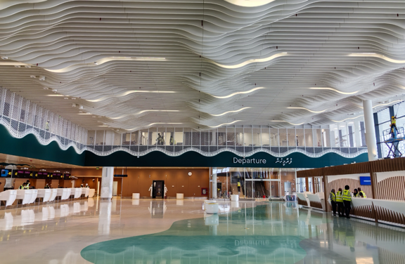 新航站樓設計獨具特色,將馬爾代夫傳統元素與現代建筑風格相融合,室內大量采用珊瑚石裝飾、傳統木雕等特色材料和工藝,營造出濃郁的地方文化氛圍,同時布局和功能設計充分考慮旅客需求,將提供更優質便捷的服務。