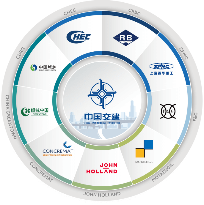 中國(guó)交建旗下?lián)碛蠧HEC(中國(guó)港灣)、CRBC(中國(guó)路橋)、ZPMC(振華重工)、CURG(中國(guó)城鄉(xiāng))、綠城中國(guó)、美國(guó)F&G、澳大利亞 John Holland、巴西 Concremat、葡萄牙 MOTA ENGIL 等國(guó)內(nèi)外知名品牌,在全球舞臺(tái)與國(guó)際一流企業(yè)同臺(tái)競(jìng)技。