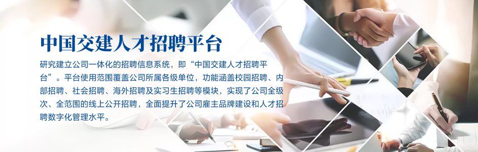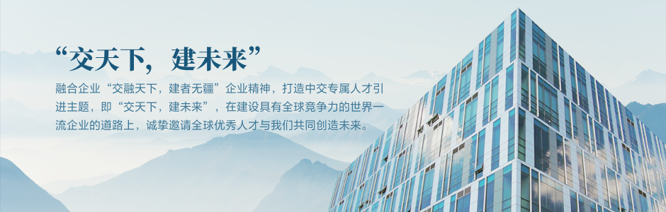 融合企業(yè)“交融天下,建者無疆”企業(yè)精神,打造中交專屬人才引進(jìn)主題,即“交天下,建未來”,在建設(shè)具有全球競(jìng)爭(zhēng)力的世界一流企業(yè)的道路上,誠摯邀請(qǐng)全球優(yōu)秀人才與我們共同創(chuàng)造未來。