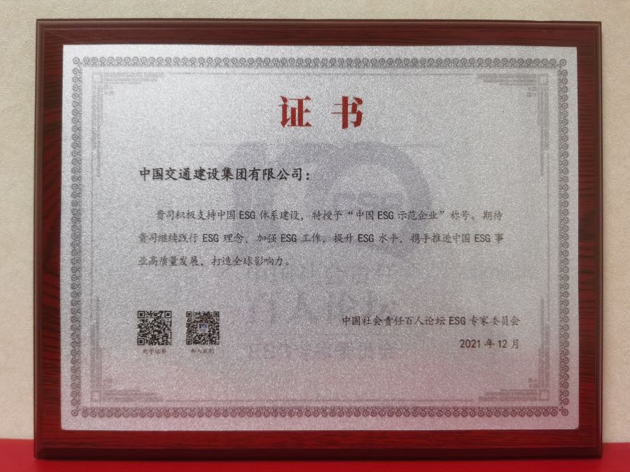2021年,國務院國資委首次將ESG納入推動企業履行社會責任重點工作,中國交建作為ESG理念的持續踐行者,交出了一份精彩厚重的答卷。2021年,通過加強ESG治理,中國交建匯聚改革創效合力、不負市場所望,深挖永續發展潛力、不負山水所寄,厚培履責踐諾能力、不負社會所托,公司新簽合同額、營業收入、利潤總額、凈利潤均創歷史新高,榮居《財富》世界500強第61位,在國務院國資委經營業績考核中獲“16連A”,入選首批中國ESG示范企業,實現了“十四五”高質量發展的良好開局,在建設具有全球競爭力的科技型、管理型、質量型世界一流企業道路上砥礪深耕、奮楫篤行。