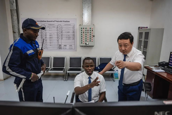 在內羅畢車站運轉車間調度室,毛鑫與徒弟彼得?恩堅加一起制定調度計劃、調控列車運轉。毛鑫說:“我們無保留地把中國的技術標準帶到肯尼亞,學員已達到國內車站同等作業標準。”彼得表示,自己從師傅身上學到了許多專業技術,未來他將把知識傳授給更多人。