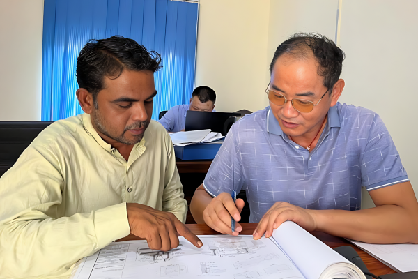 王衛(wèi)東自2007年開始,長期在巴基斯坦工作,現(xiàn)在是巴基斯坦卡拉奇4號供水管線項目測量主管。當?shù)貑T工巴丹是王衛(wèi)東最看好的徒弟。
