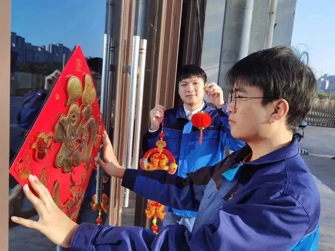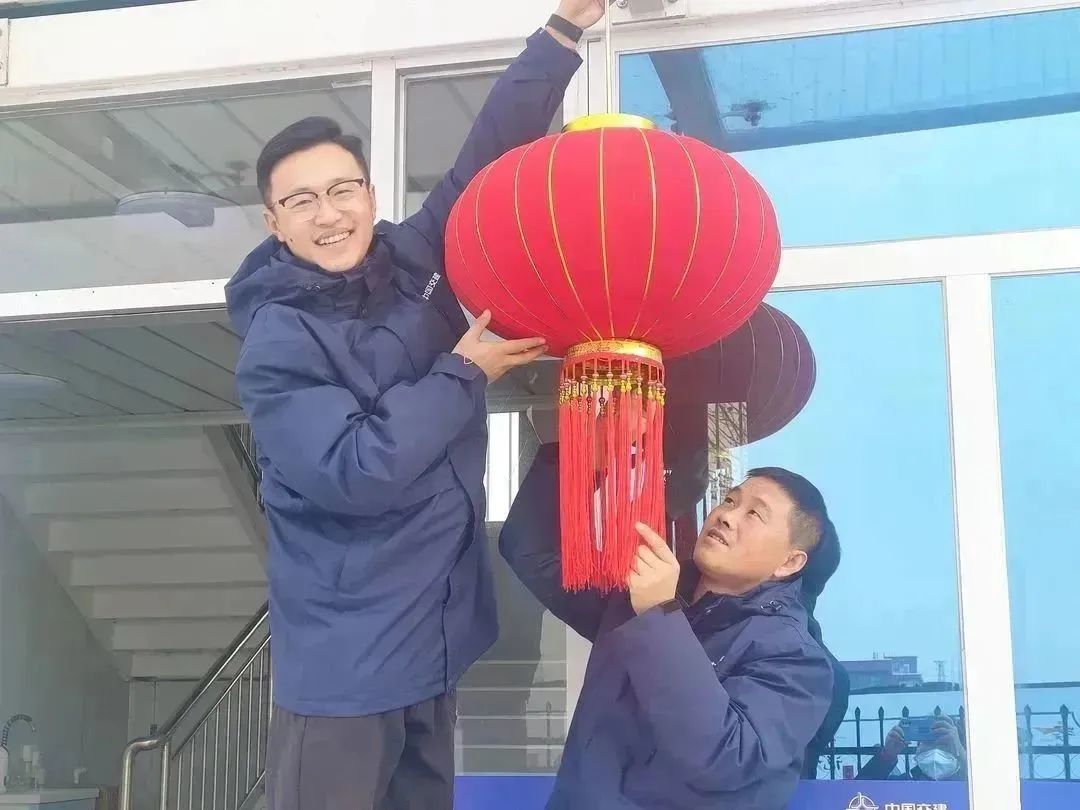 一航局山東淄博高新區中德學校項目職工掛紅燈籠、貼窗花,營造了喜慶、紅火的春節氛圍,年味十足。