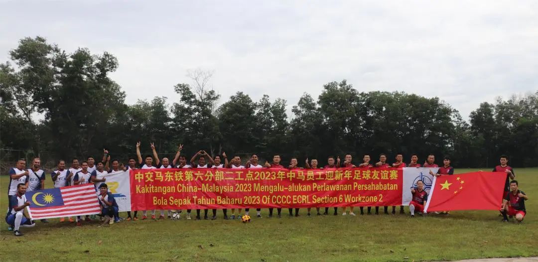 中國交建馬來西亞東海岸鐵路項目第六分部二工點舉辦迎新年中馬足球友誼賽。