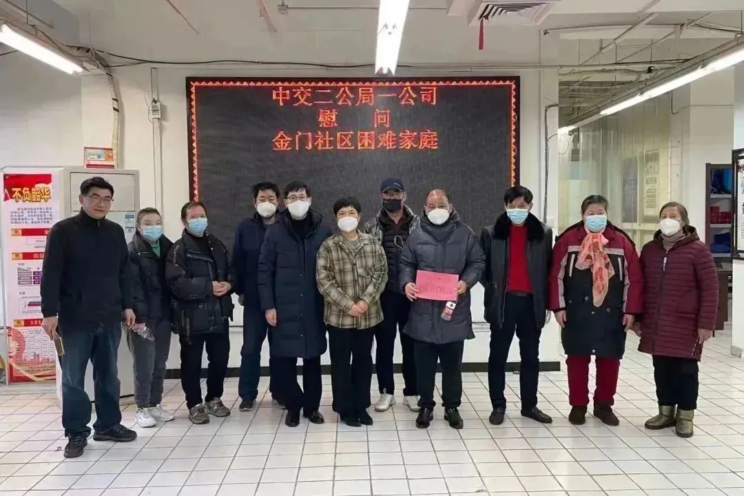 二公局一公司與湖北武漢江岸區西馬街道舉行共建活動,為西馬街轄區內的金門社區10戶困難家庭送去春節慰問。