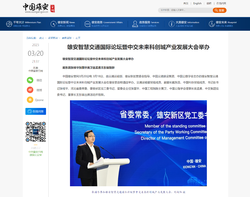 雄安智慧交通國際論壇暨中交未來科創城產業發展大會舉行