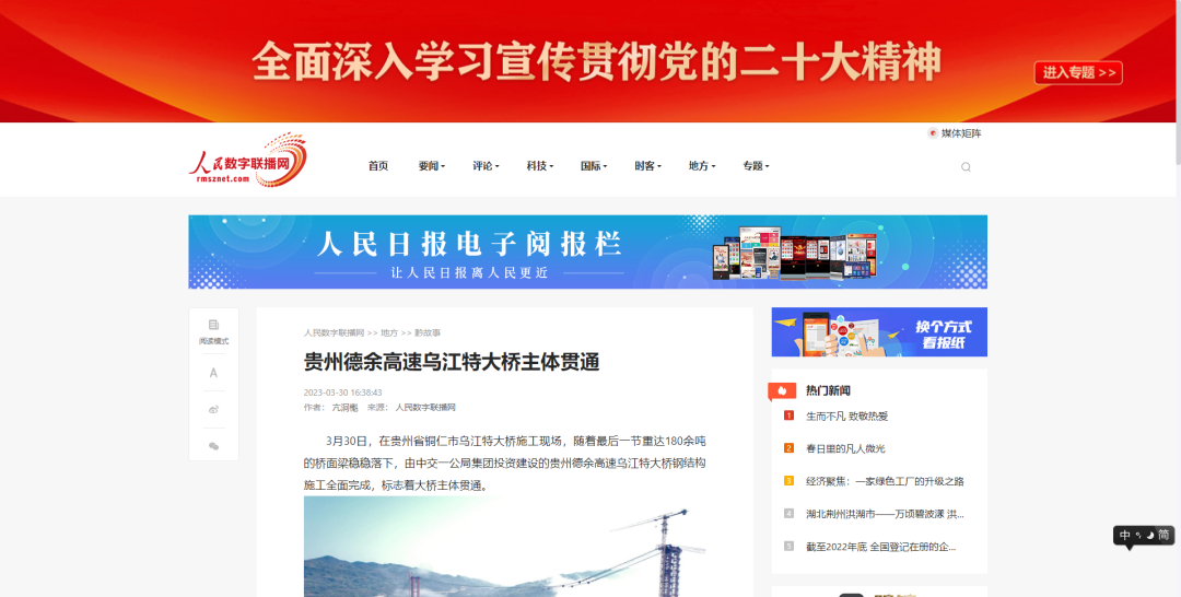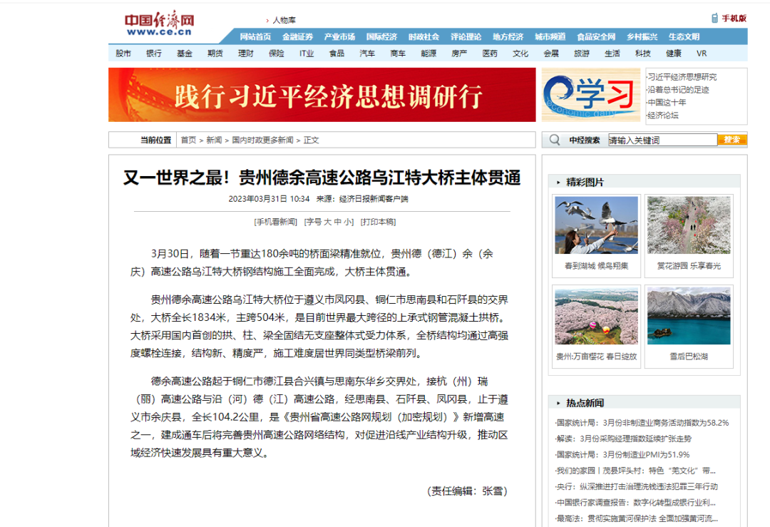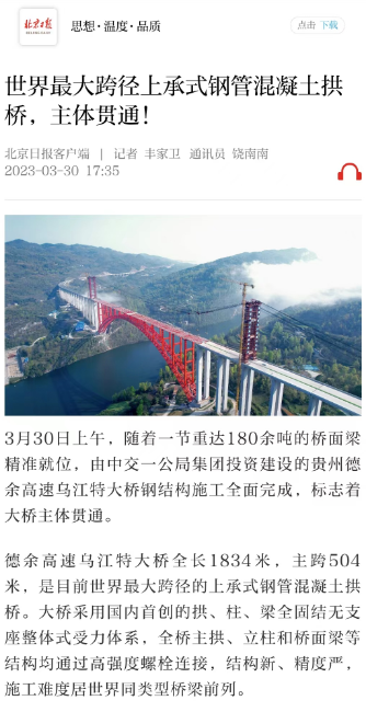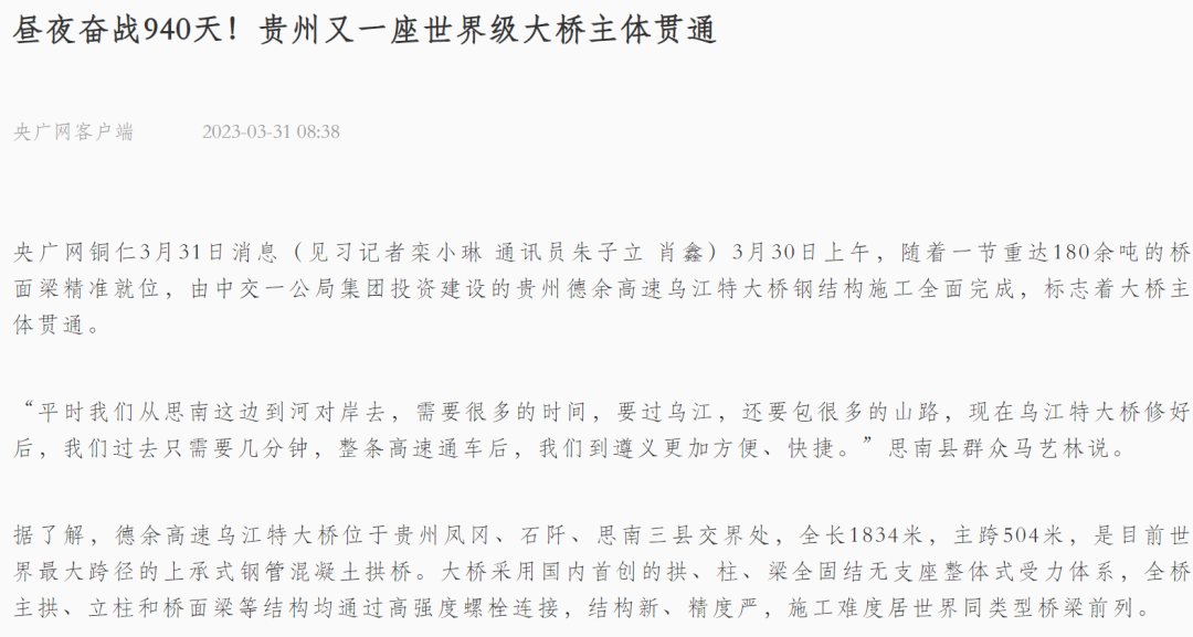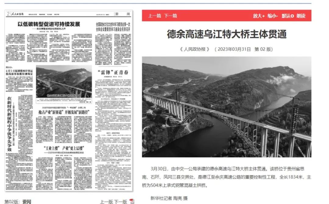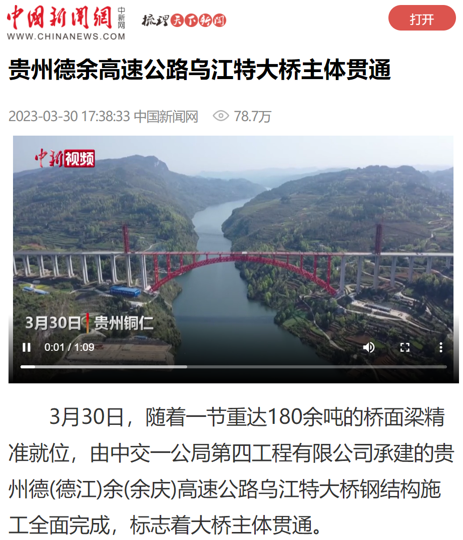 超級橋梁再“上新”丨主流媒體關注德余高速烏江特大橋主體貫通