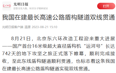 對我國在建最長盾構高速公路隧道順利貫通