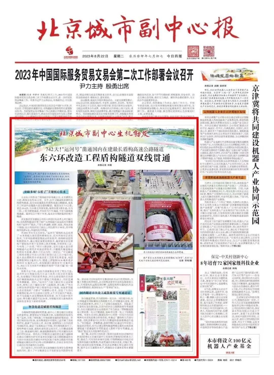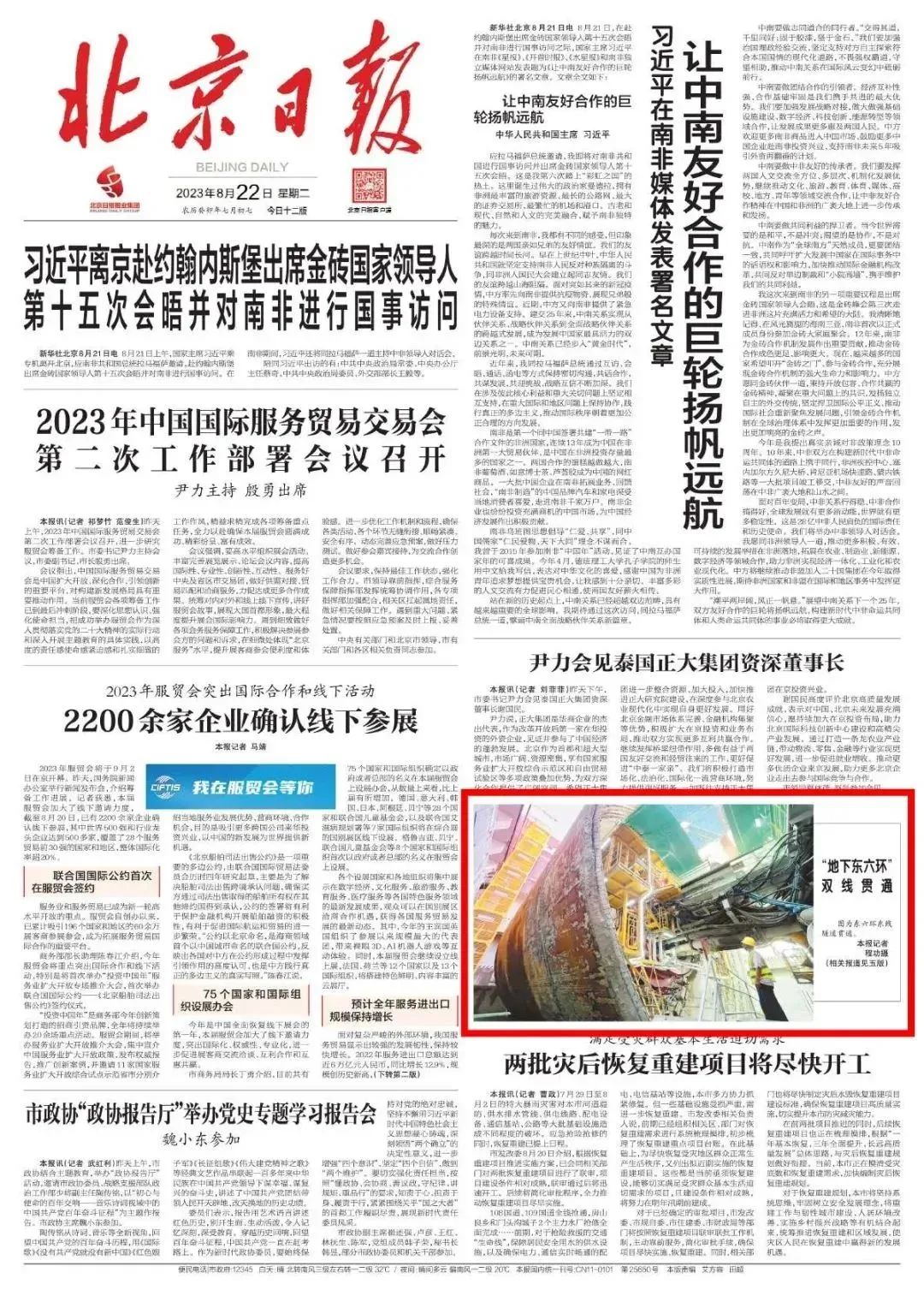 北京日報頭版圖片新聞報道北京東六環改造工程雙線貫通。北京日報多個媒體平臺同時報道北京東六環改造工程雙線貫通,累計瀏覽量超20萬次。